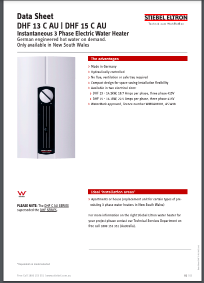 Click here to access 1543358287_STIEBEL_ELTRON_DHF_C_AU_DATA_SHEET_AUGUST_2015 When you’re in need, we’re here to help! We offer a range of services including plumbing, electrical, gas fitting, handyman services, appliance repairs, bathroom renovation and much more. Contact us now or check out our rates and payment plans.