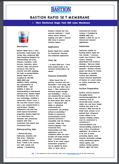 Click here to access Bastion 4L Rapid Set Membrane – user guide When you’re in need, we’re here to help! We offer a range of services including plumbing, electrical, gas fitting, handyman services, appliance repairs, bathroom renovation and much more. Contact us now or check out our rates and payment plans.