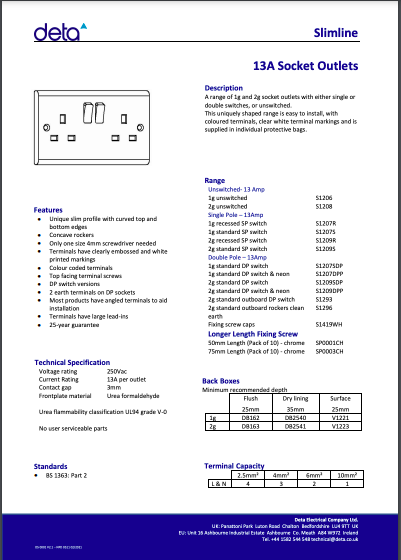 Click here to access DS 0001 V2.1 – Slimline – 13A Socket Outlets When you’re in need, we’re here to help! We offer a range of services including plumbing, electrical, gas fitting, handyman services, appliance repairs, bathroom renovation and much more. Contact us now or check out our rates and payment plans.