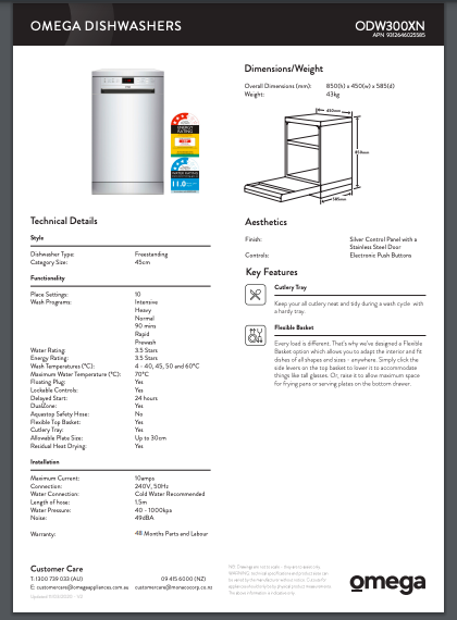 Click here to access Omega_ODW300XN_Techsheet When you’re in need, we’re here to help! We offer a range of services including plumbing, electrical, gas fitting, handyman services, appliance repairs, bathroom renovation and much more. Contact us now or check out our rates and payment plans.