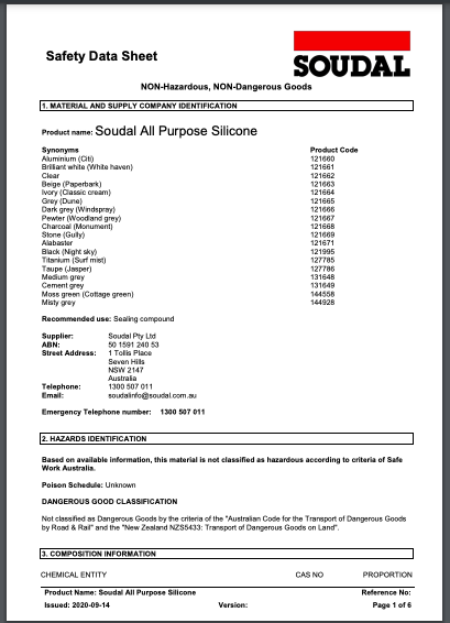 Click here to access SDS – Soudal All Purpose Silicone When you’re in need, we’re here to help! We offer a range of services including plumbing, electrical, gas fitting, handyman services, appliance repairs, bathroom renovation and much more. Contact us now or check out our rates and payment plans.