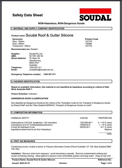 Click here to access SDS – Soudal Roof & Gutter Silicone When you’re in need, we’re here to help! We offer a range of services including plumbing, electrical, gas fitting, handyman services, appliance repairs, bathroom renovation and much more. Contact us now or check out our rates and payment plans.