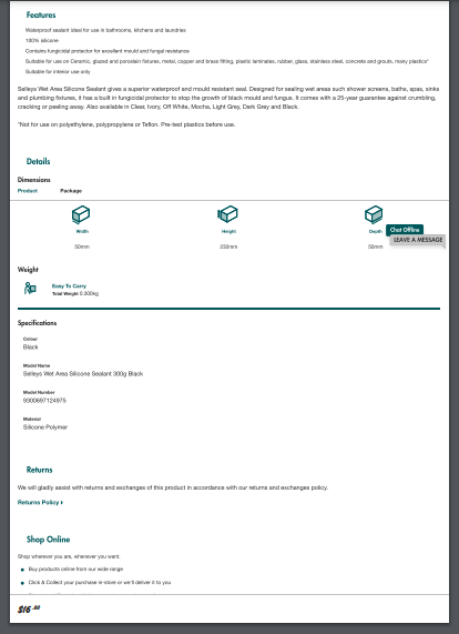 Click here to access Selleys 300g Wet Area Waterproof Silicone Sealant – Black – User Guide When you’re in need, we’re here to help! We offer a range of services including plumbing, electrical, gas fitting, handyman services, appliance repairs, bathroom renovation and much more. Contact us now or check out our rates and payment plans.