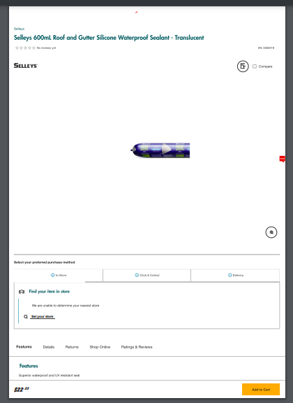 Click here to access Selleys 600mL Roof and Gutter Silicone Waterproof Sealant – Translucent – User guide When you’re in need, we’re here to help! We offer a range of services including plumbing, electrical, gas fitting, handyman services, appliance repairs, bathroom renovation and much more. Contact us now or check out our rates and payment plans.