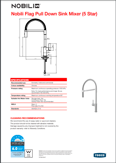 Click here to access Specification-Sheet-Nobili-Flag-Pull-Down-Sink-Mixer-Chrome-5-Star When you’re in need, we’re here to help! We offer a range of services including plumbing, electrical, gas fitting, handyman services, appliance repairs, bathroom renovation and much more. Contact us now or check out our rates and payment plans.