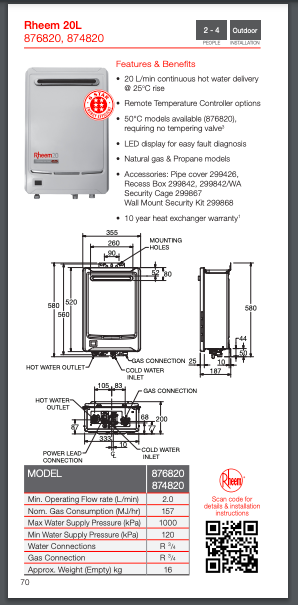 Click here to access Specification-Sheet-Rheem-18-27L-Continuous-Flow-Hot-Water-System When you’re in need, we’re here to help! We offer a range of services including plumbing, electrical, gas fitting, handyman services, appliance repairs, bathroom renovation and much more. Contact us now or check out our rates and payment plans.
