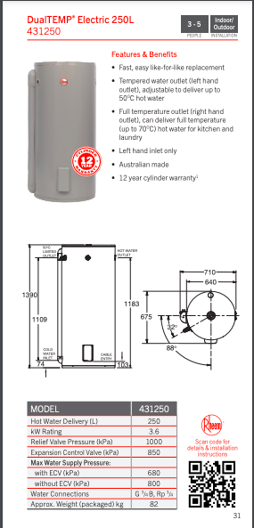 Click here to access Specification-Sheet-Rheem-DualTemp-250L-Electric-Hot-Water-System