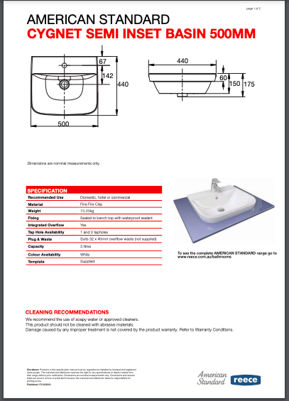 Click here to access Technical-Guide-American-Standard-Cygnet-Semi-Inset-Basin-500mm-White When you’re in need, we’re here to help! We offer a range of services including plumbing, electrical, gas fitting, handyman services, appliance repairs, bathroom renovation and much more. Contact us now or check out our rates and payment plans.