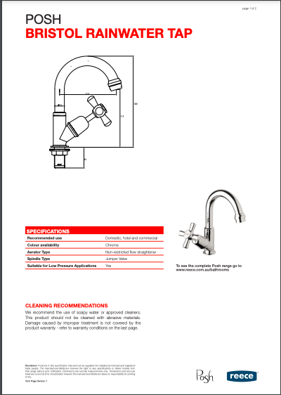 Click here to access Technical-Guide-Posh-Bristol-Rainwater-Tap-Chrome When you’re in need, we’re here to help! We offer a range of services including plumbing, electrical, gas fitting, handyman services, appliance repairs, bathroom renovation and much more. Contact us now or check out our rates and payment plans.