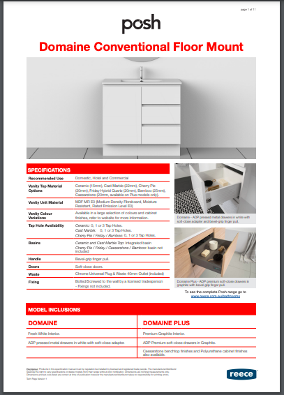 Click here to access Technical-Guide-Posh-Domaine-Conventional-Floor-Mount-Vanity When you’re in need, we’re here to help! We offer a range of services including plumbing, electrical, gas fitting, handyman services, appliance repairs, bathroom renovation and much more. Contact us now or check out our rates and payment plans.