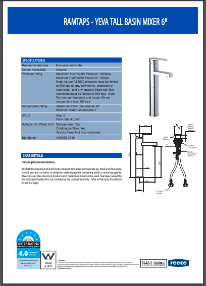 Click here to access Technical-Guide-Yeva-Tall-Basin-Mixer-100mm-Chrome-6-Star- When you’re in need, we’re here to help! We offer a range of services including plumbing, electrical, gas fitting, handyman services, appliance repairs, bathroom renovation and much more. Contact us now or check out our rates and payment plans.